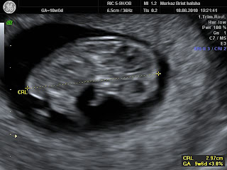 בסוף הטרימסטר הראשון אפשר כבר לראות עובר עם מרבית האיברים שיהיו בתינוק.